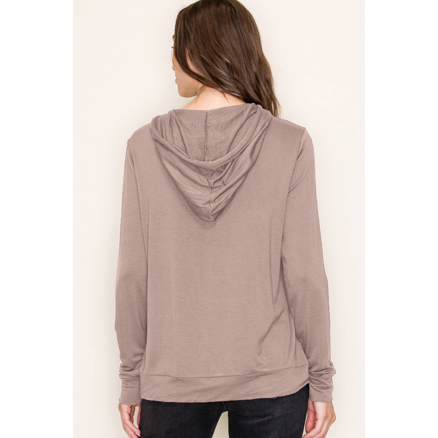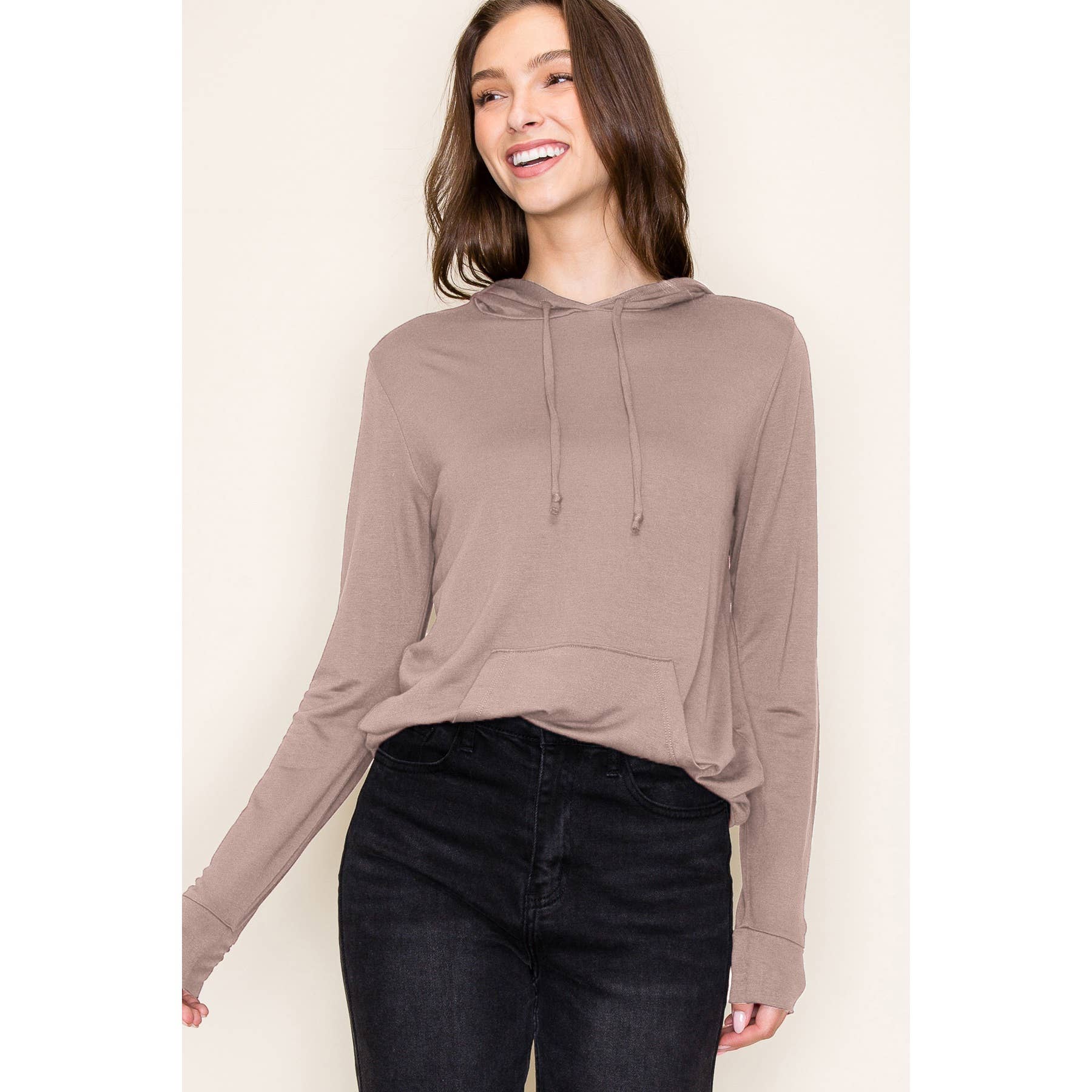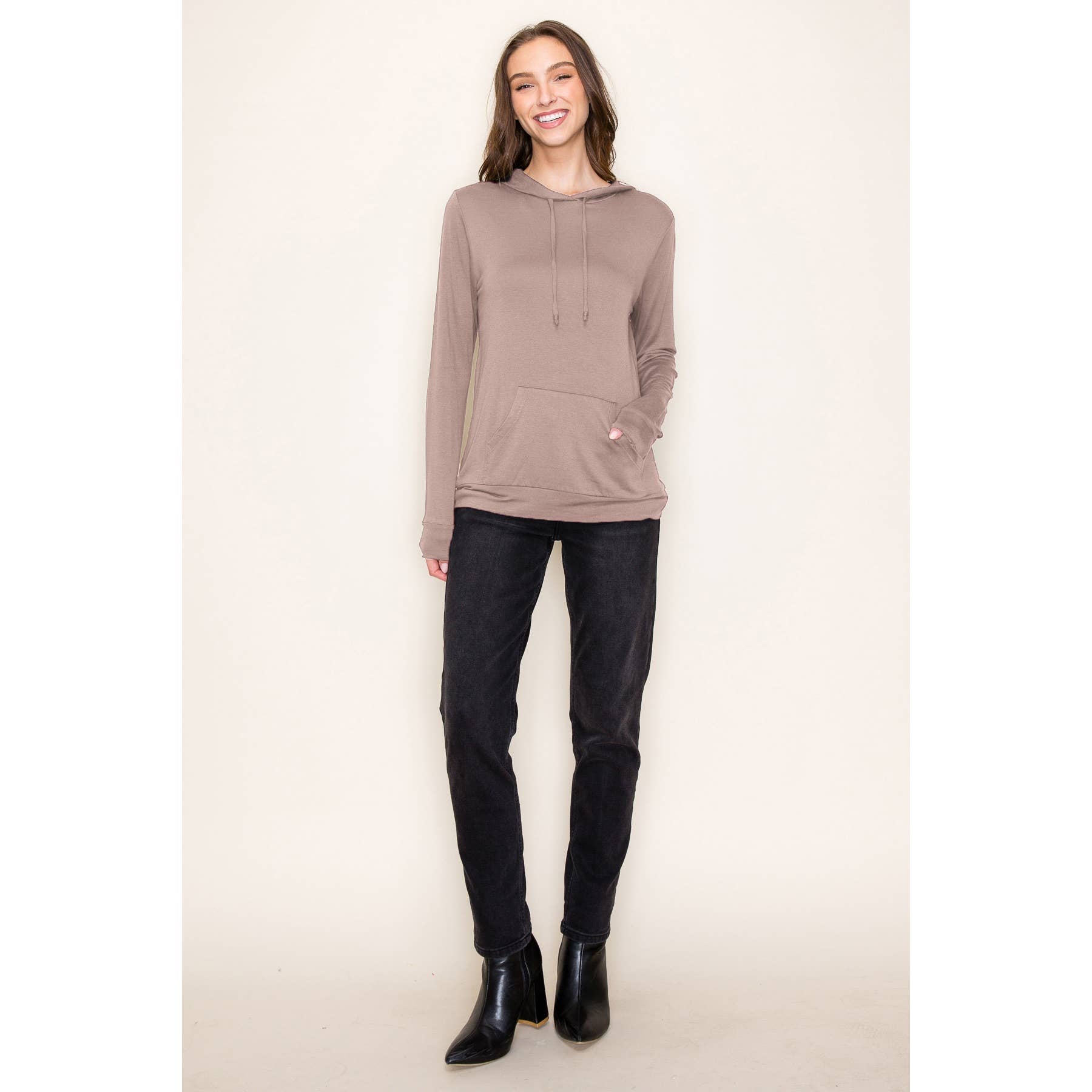 Stay cozy and stylish with our Drawstring Neck Long Sleeve Kangaroo Pocket Solid Terry Hoodie Top. This classic hoodie features a functional drawstring neck and a spacious kangaroo pocket for convenience. Made from soft terry fabric, it offers comfort and warmth. Perfect for casual outings or lounging, this solid hoodie top combines timeless design with modern comfort.
